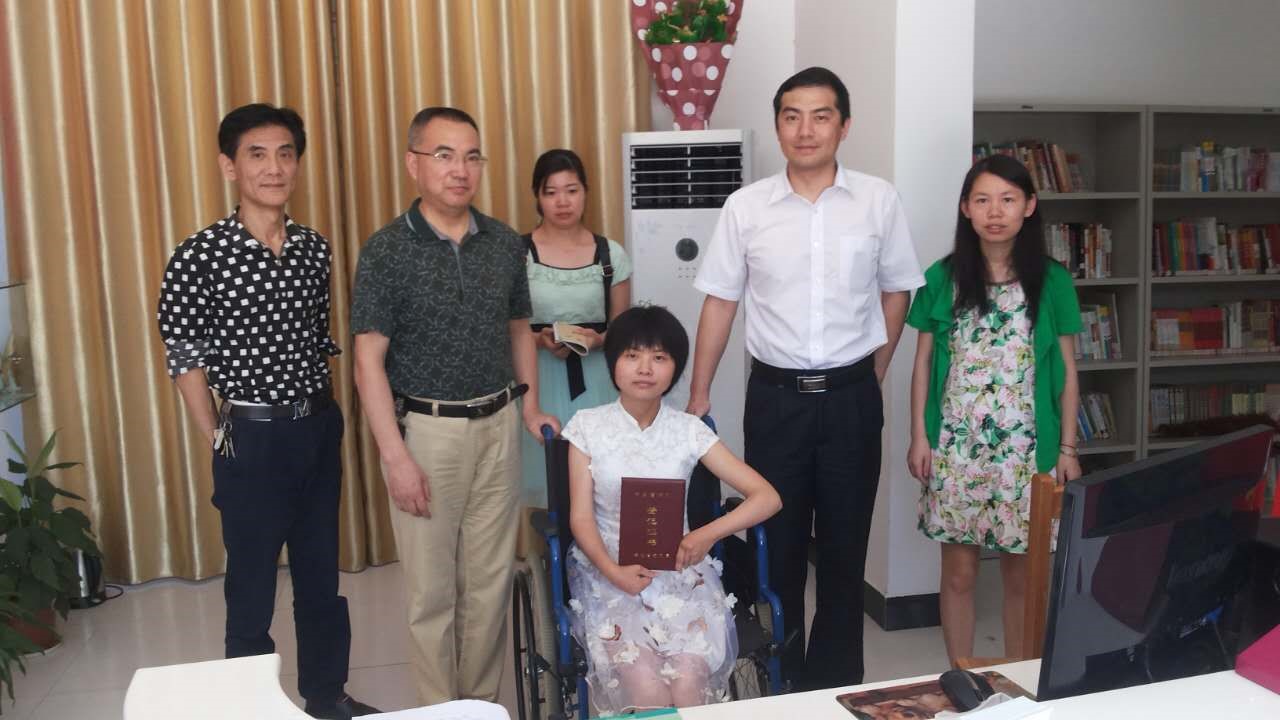 宣講會后,省版權(quán)保護(hù)中心一行來到宜都市陸城街道辦事處頭筆社區(qū)李玉潔工作室。被譽(yù)為“宜昌海迪”的李玉潔幼年因病導(dǎo)致癱瘓,但她對生活充滿信心,一直筆耕不輟,在輪椅上放飛自己的文學(xué)夢想,用殘缺的身體書寫自強(qiáng)不息。她負(fù)責(zé)管理的社區(qū)書屋被評為全國優(yōu)秀農(nóng)家書屋,她本人也被評為全國優(yōu)秀農(nóng)家書屋管理員。2015年7月,李玉潔歷時(shí)3年寫成的自傳體小說《夢想在110厘米之上》由人民出版社出版,成為全國青少年的勵(lì)志讀本。省委書記李鴻忠在閱讀了該書后,給予高度評價(jià),并親自給李玉潔回信。現(xiàn)在李玉潔正著手第二部新書的創(chuàng)作,已完成整體框架構(gòu)思及5萬多字的內(nèi)容寫作。中心工作人員為李玉潔創(chuàng)作的相關(guān)作品進(jìn)行了版權(quán)登記,并現(xiàn)場發(fā)放了登記證書,同時(shí)鼓勵(lì)其創(chuàng)作更多優(yōu)秀作品,向人們提供更多精神食糧,給社會帶來更多正能量。