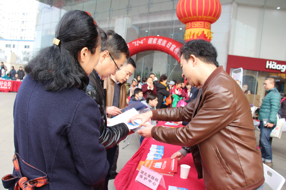今年12月4日是我國第4個“國家憲法日”,也是第17個“全國法制宣傳日”。為在社會營造尊法、學法、守法、用法的濃厚氛圍,提升公眾版權(quán)保護意識,12月4日上午,省版權(quán)保護中心會同武漢市洪山區(qū)相關(guān)政府職能部門和公檢法機關(guān)30余家單位,在人流密集的珞珈創(chuàng)意城集中開展國家憲法日宣傳活動。
