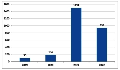 圖二:2019年至2022年數(shù)字教育著作權(quán)案件收案量情況