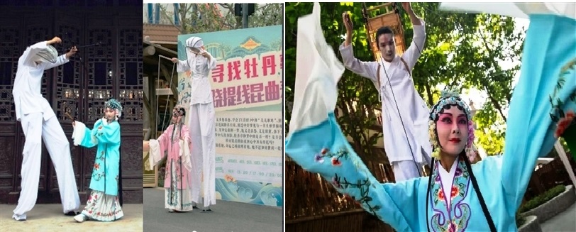 《尋找牡丹亭》是艾克斯公司創(chuàng)作的公共空間表演節(jié)目之一。公共空間表演是發(fā)源于歐洲的一種表演形式,最大的特點是可以擺脫對傳統(tǒng)表演舞臺的依賴,在街頭、商場、游樂園、旅游景點等更為廣闊的空間進(jìn)行表演,而且也更加強(qiáng)調(diào)與現(xiàn)場觀眾的互動性。